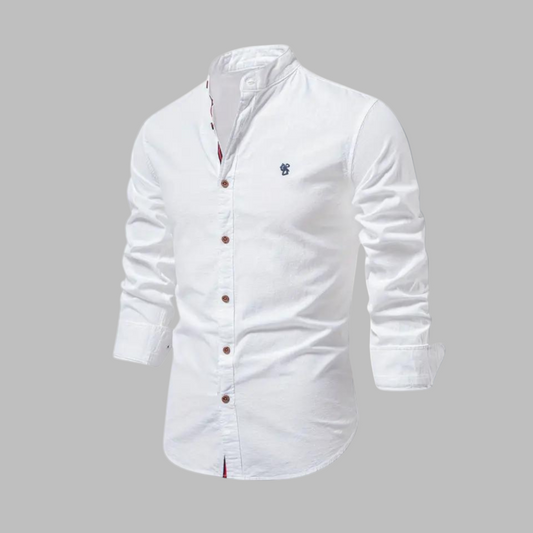 Momount Men Shirt – Long Sleeve Mandarin Collar Button Up Military