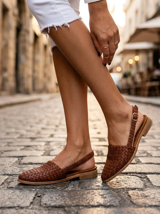 Esperanta | Braided Leather Buckle Slingback Loafers