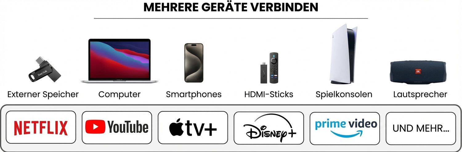🎮 Großbild-Gaming:Schließen Sie Ihre Konsole an und genießen Sie ein gestochen scharfes Bild!