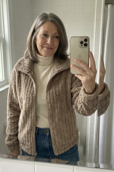 This jacket is exactly what I've been searching for! Always struggled finding outerwear that felt cozy without adding bulk. The texture is so soft and it's become my go-to for chilly mornings!