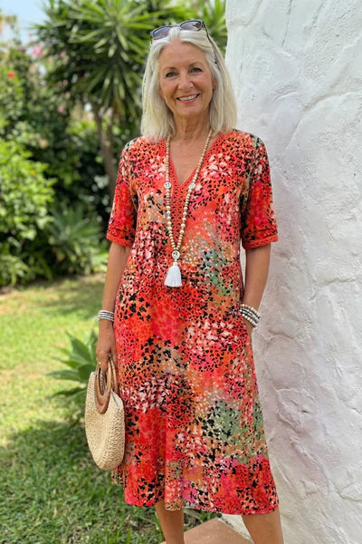 Isadora | Abstract Print Short Sleeve Summer Midi Dress