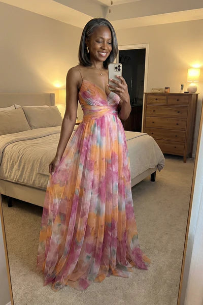 Serenova | Watercolor Wrap V Neck Maxi Dress